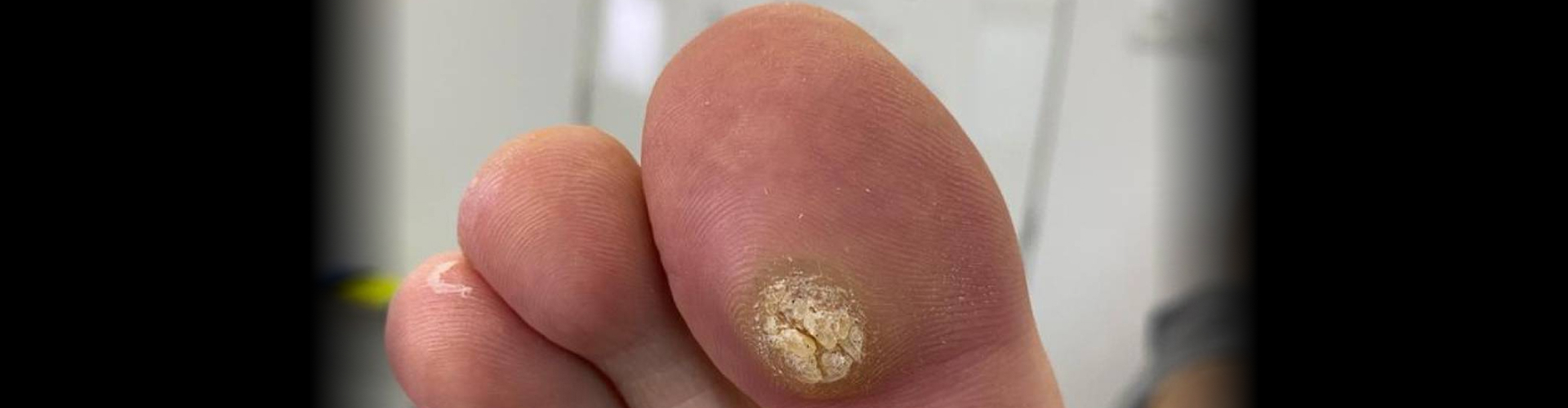 Warts are small growths on the skin caused by a human papillomavirus (HPV) infection. Although frequently painless on other parts of the body, warts on the feet tend to grow inwards due to the pressure exerted on them. This causes pain and discomfort, particularly when the patient places weight on their feet. Warts typically present as a rough cauliflower-like surface with small black dots.